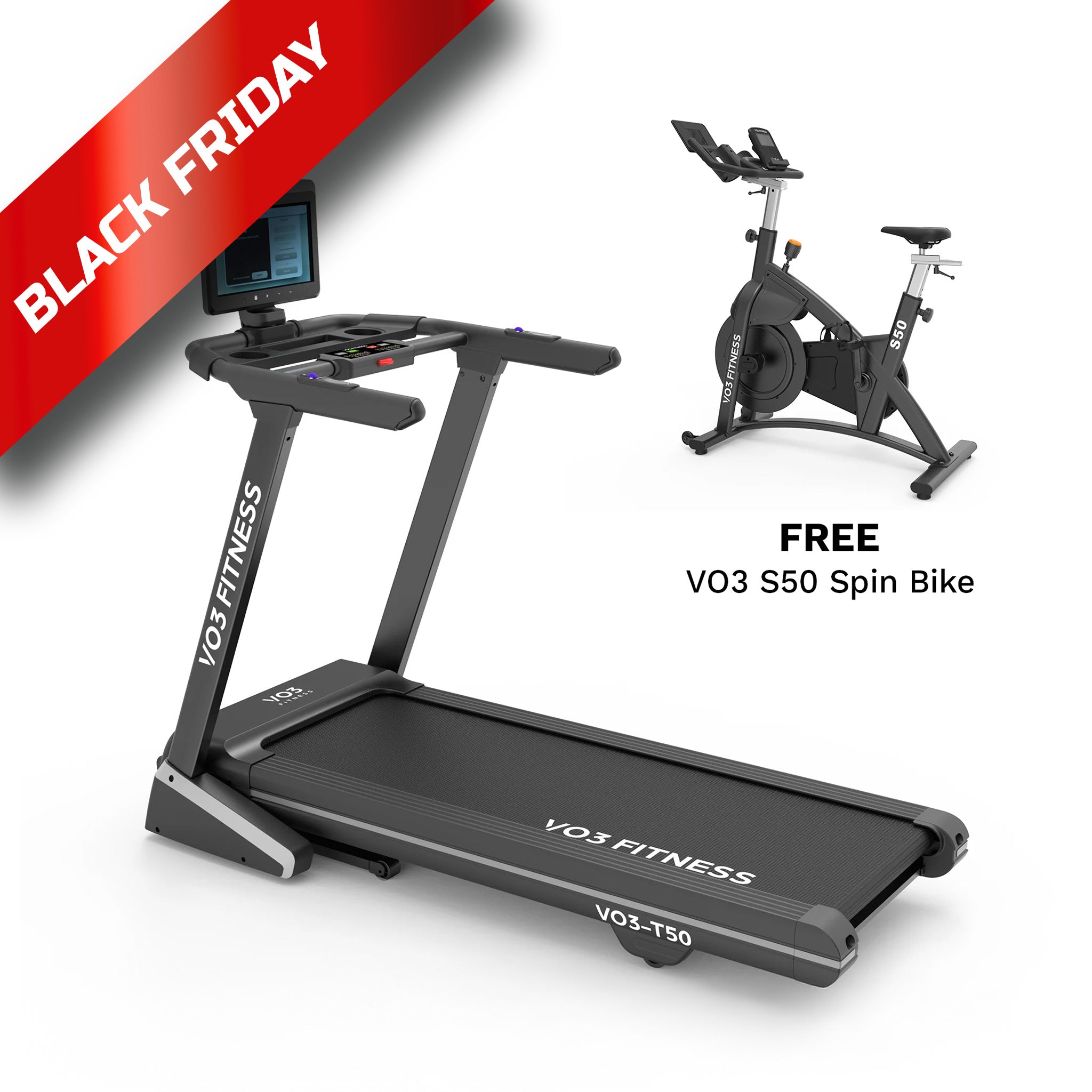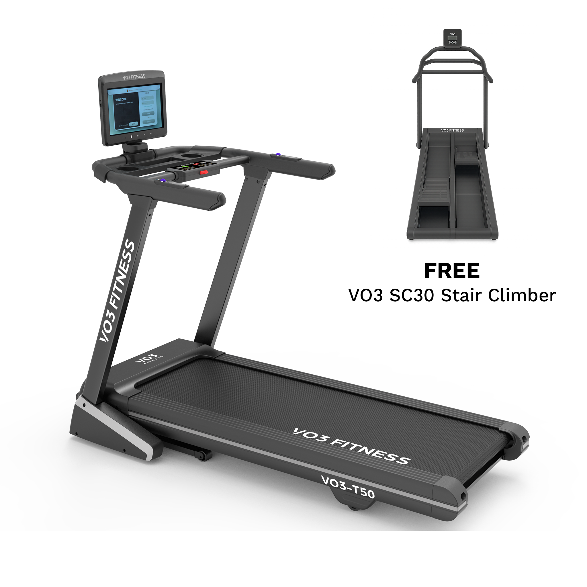 VO3 Fitness T50e Folding Treadmill + Free Spin Bike or Stair Climber