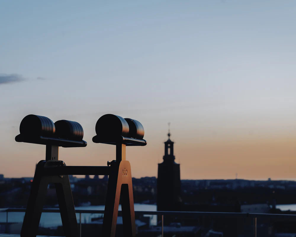 The next evolution in strength training—now with 4 shifting half plates for precise 5 lb increments, a redesigned handle, thicker plates with stainless steel V-connectors, and a more durable build.