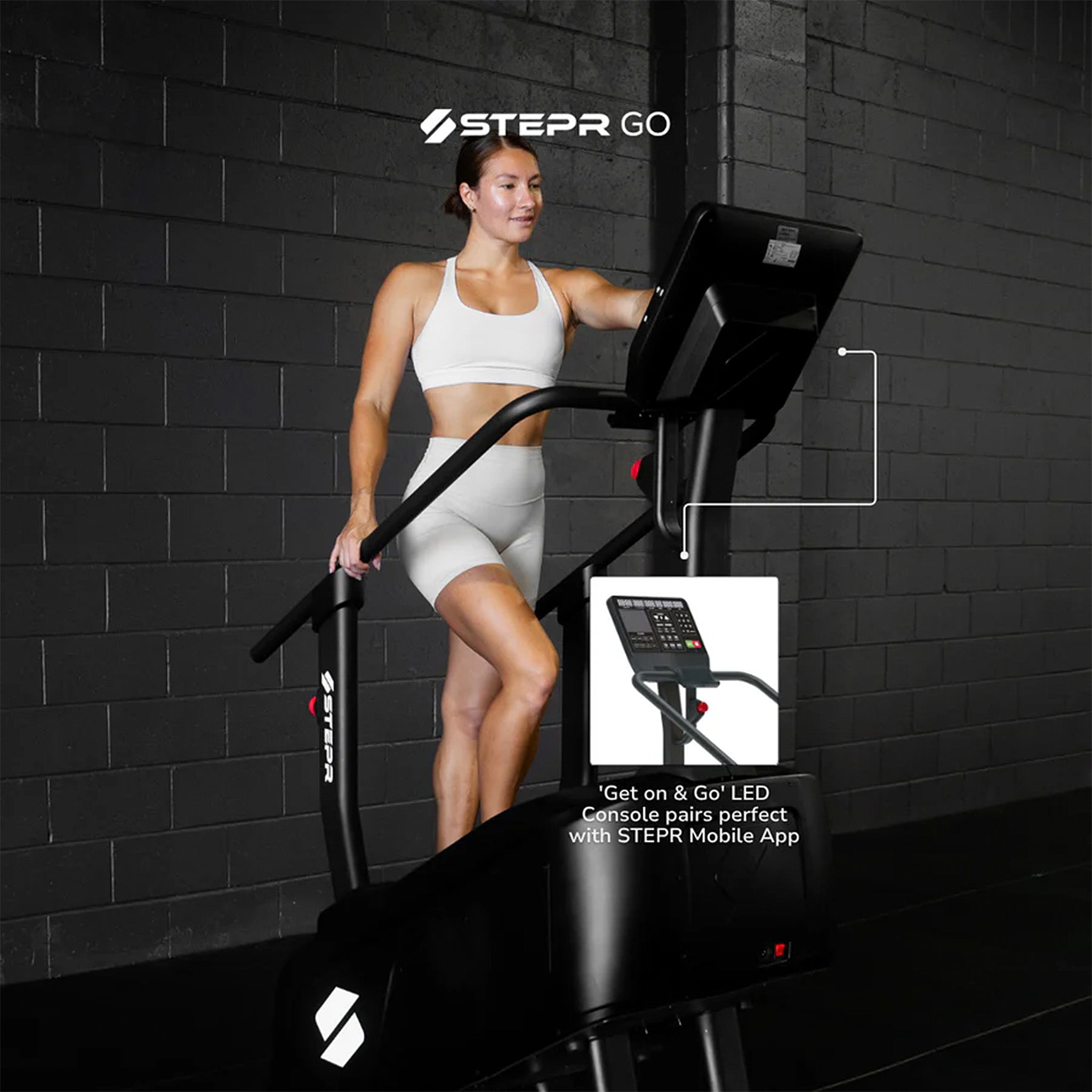 The STEPR series redefines the stair climber experience with smart, space-efficient design and advanced cardio technology. Engineered for both home gyms and commercial spaces, each STEPR Stair Climber—including the STEPR Classic, STEPR Go, and STEPR Pro delivers smooth, low-impact stair climbing with a compact footprint that fits easily through standard doorways and rooms with 8ft ceilings. Featuring the innovative floating step design, adjustable step height, and durable anchor points, the STEPR provides a full-body workout with natural motion and outstanding safety. Choose between the classic LED console or the immersive HD touchscreen display, offering access to on-demand classes, coach-led on-demand workouts, and even your favourite streaming and entertainment apps. Designed to fit your lifestyle, the STEPR offers the perfect balance between a treadmill and traditional stair climber, with steps per minute (SPM) tracking, stadium step simulation, and advanced safety features. Whether for CrossFit, home use, or fitness studios, STEPR delivers professional-grade exercise equipment that’s as space-saving as it is powerful.