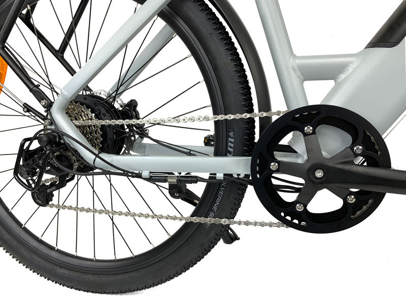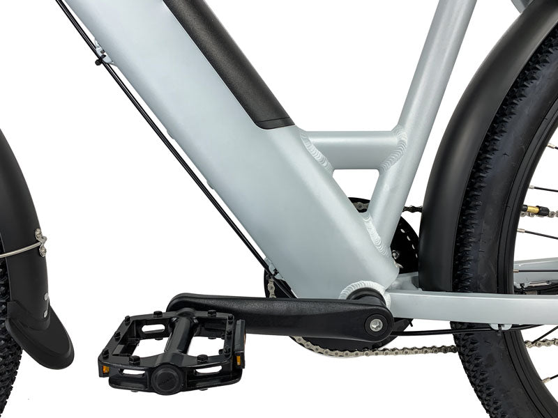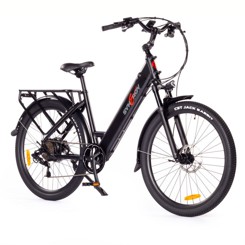 The Synergy Commuter Low Step combines a 500W geared rear hub motor, S-ride drive-train, hydro-formed aluminum frame, and 27.5” wheels, creating the ultimate commuter eBike. Its low step design offers easy mounting and dismounting for any rider. With a 48V 14Ah lithium-ion battery, it boasts a range of up to 70 km. Equipped with front and rear LED lights and hydraulic disc brakes, it ensures safety and style for urban commutes.