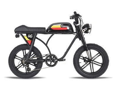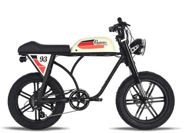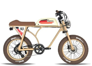 Experience the Michael Blast Outsider: a stylish blend of retro charm and modern performance! Inspired by the 1950s Vincent Black Lightning motorcycle, this e-bike features an elegant leather holster, super-fast speeds, and a 60 km range on a single 5-hour charge. With an extra-large cushioned seat, large motorcycle lamp, and versatile fat tires, the Outsider offers comfort and functionality in a nostalgic design. Ideal for riders seeking a unique and efficient riding experience!