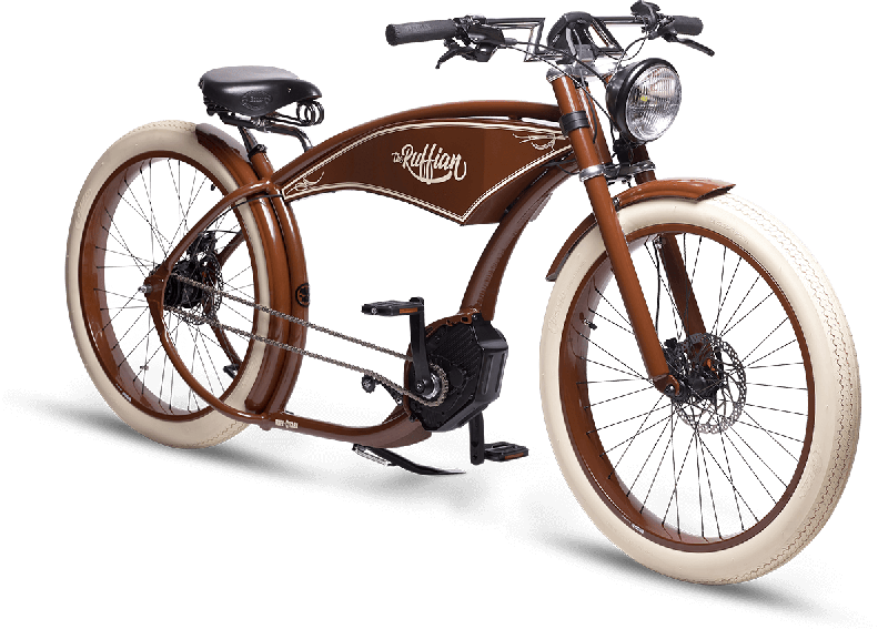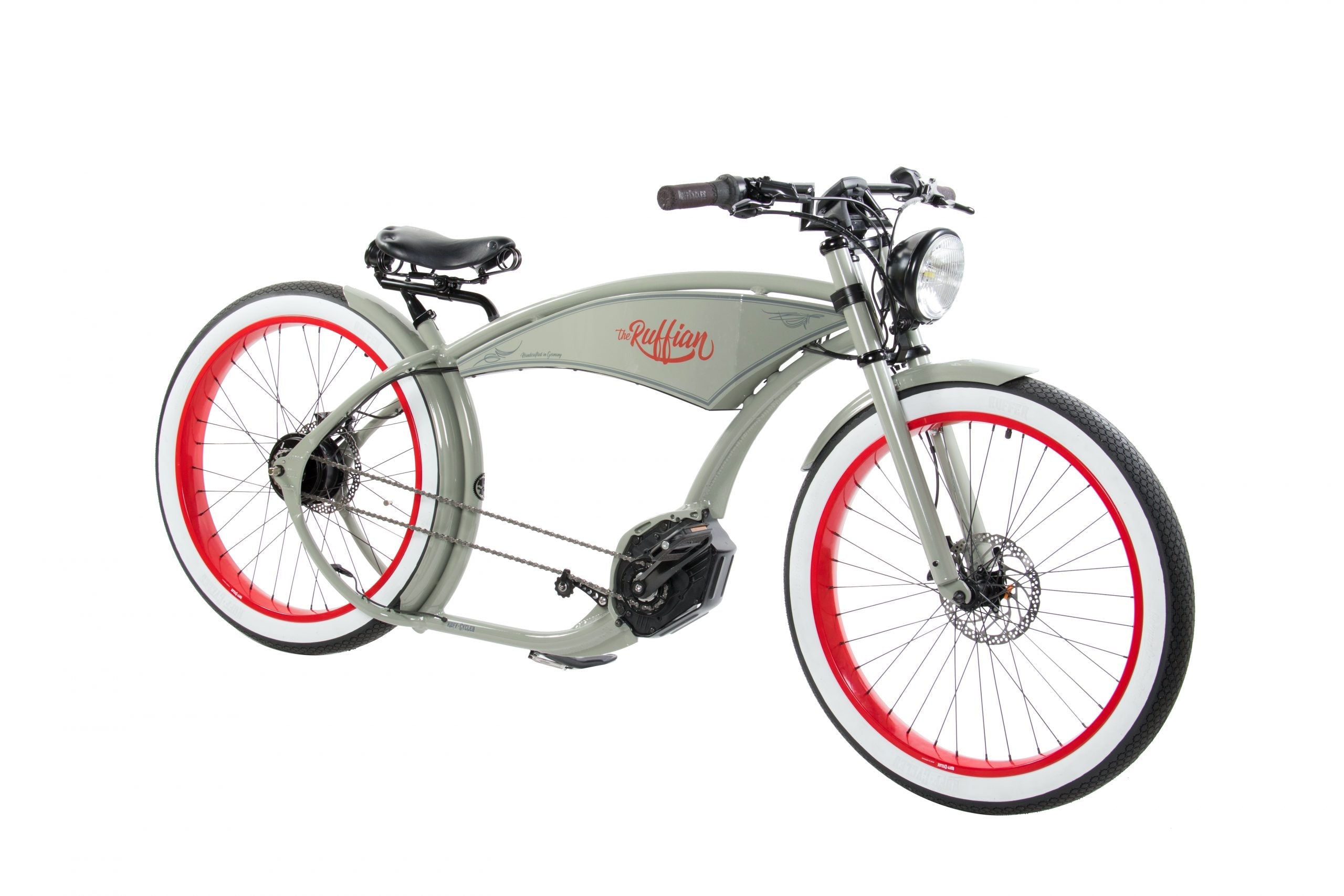 Discover the Ruffian by Ruff Cycles: an electric bike that blends vintage style with modern performance. With its sleek grey finish and powerful Bosch electric motor, the Ruffian offers effortless riding whether on city streets or rough terrain. Experience the thrill of electric biking in style with the Ruffian.