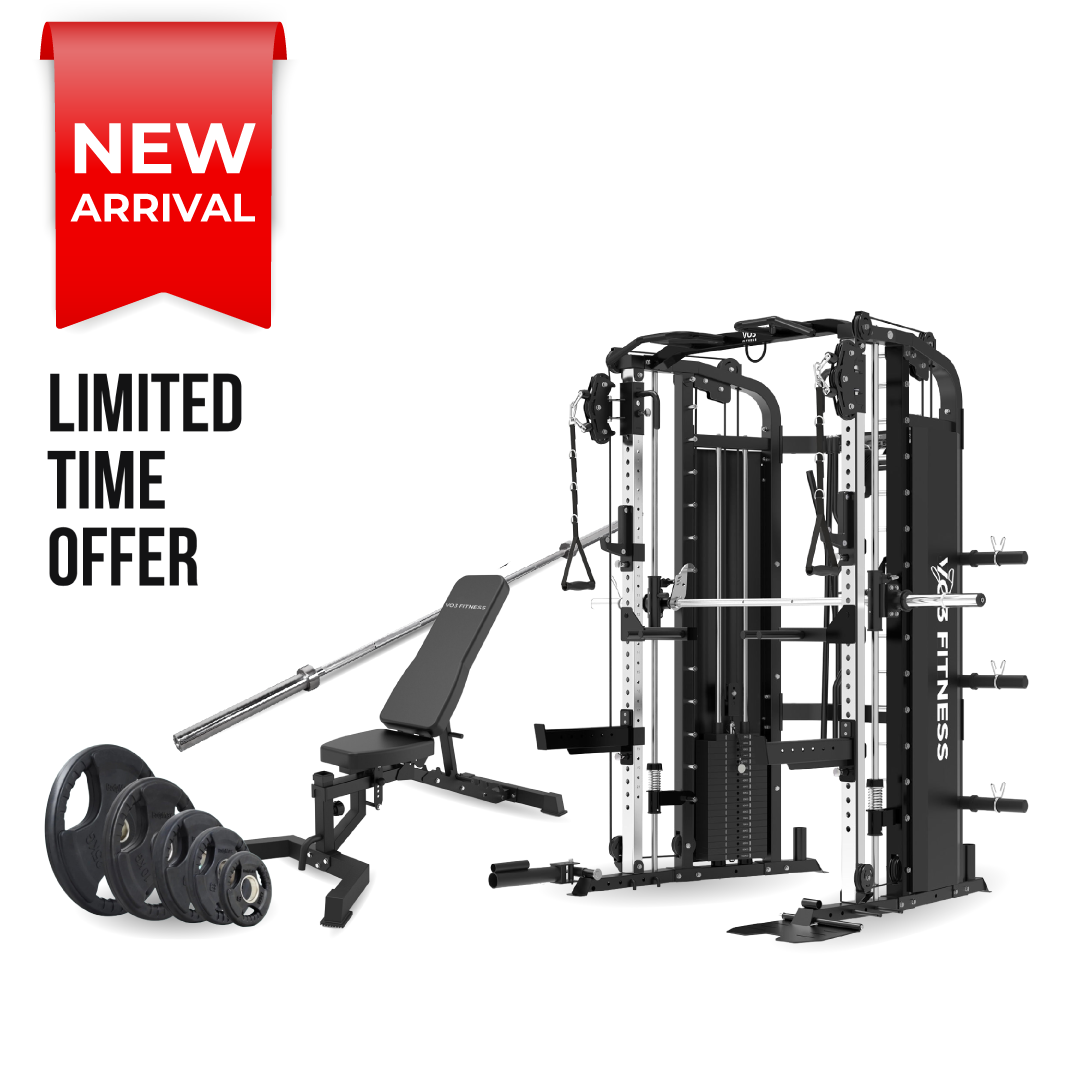VO3 SFT5 Functional Trainer + 250lb Barbell Set + FID5 Bench