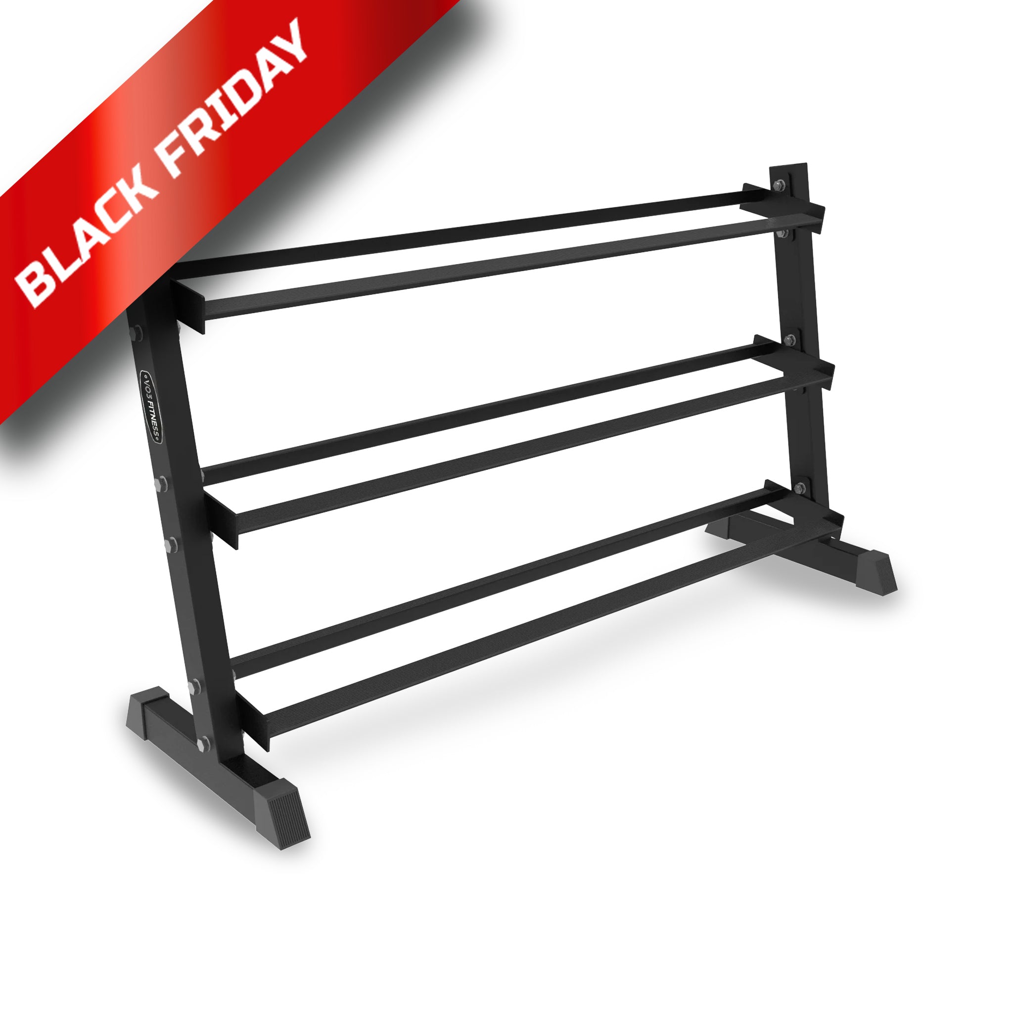 Offering the same utility with a three-tier design that has a smaller footprint than a two-tier rack. With a lip to secure the dumbbells in place, it makes sure quick and easy access. Made of heavy duty steel, the rack is beyond durable, as well as aesthetic. It can perfectly works with VO3 Fitness dumbbells.