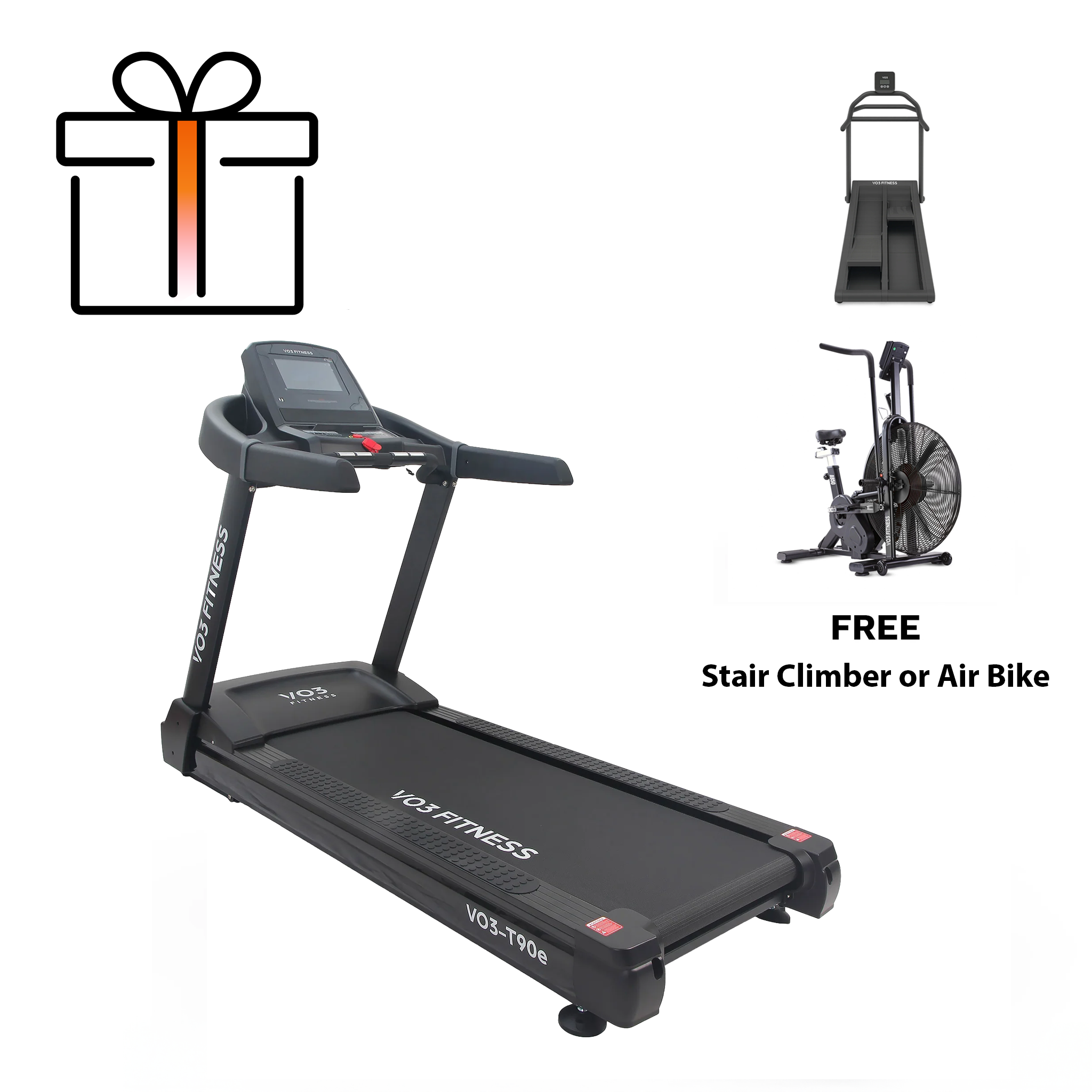 VO3 Fitness - T90e Premium Treadmill + Free Air Bike or Stair Climber